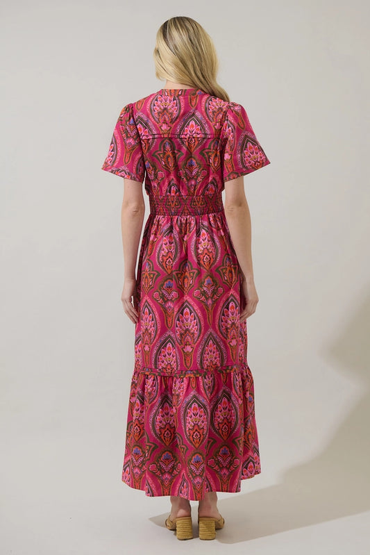 Floral Mesh Mock-Neck Thumbhole Maxi Dress
